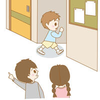 方向感覚に困難がある子どもは、慣れた場所でも、いつもと違う地点からスタートするときには、自分のいる位置がよく分からず、どちらに行ってよいのか迷ってしまうことがあります。Aのように、友だちとともに行動することで、このとまどいをなくすことができます。